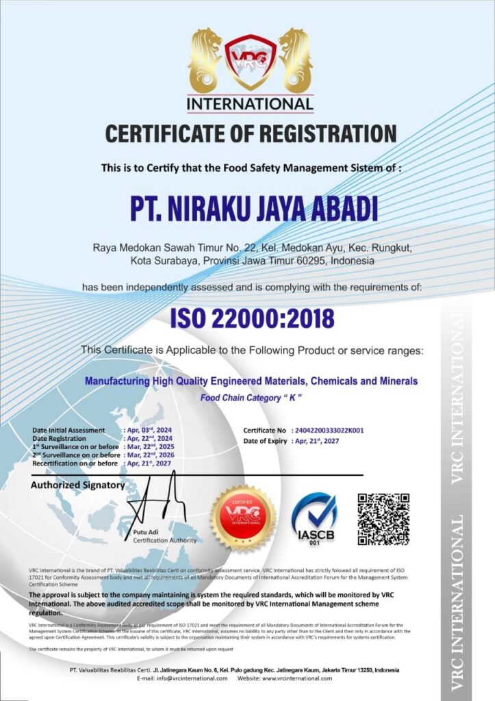 At PT Niraku Jaya Abadi, quality is not an afterthought — it’s our foundation. Our quality management system ensures batch-to-batch consistency and regulatory compliance for all products, especially talc powder.
